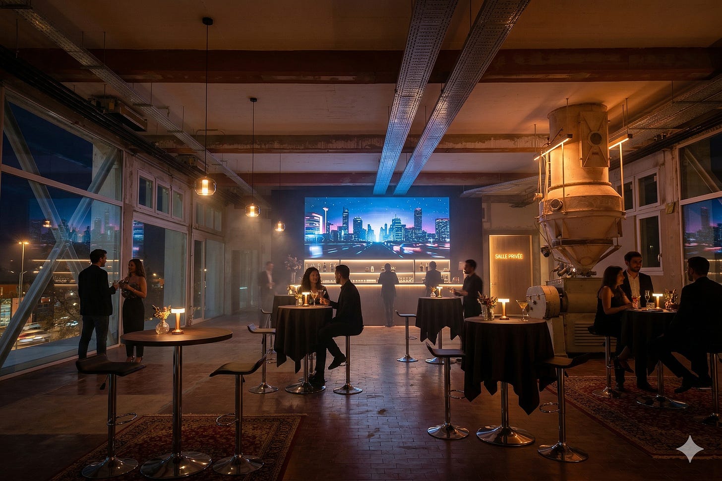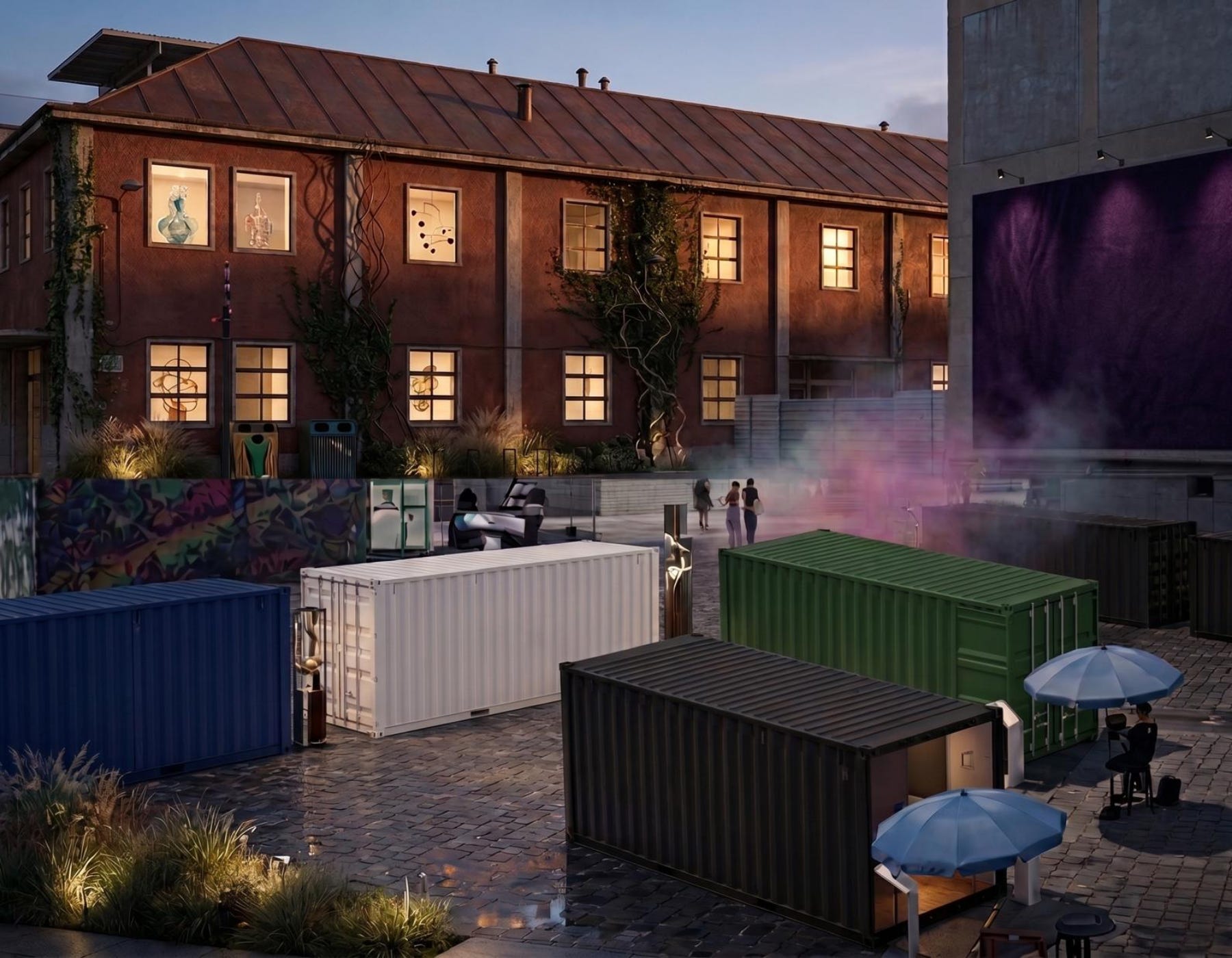 The exhibition is only one layer. After hours, the industrial complex becomes a sequence of moments.
