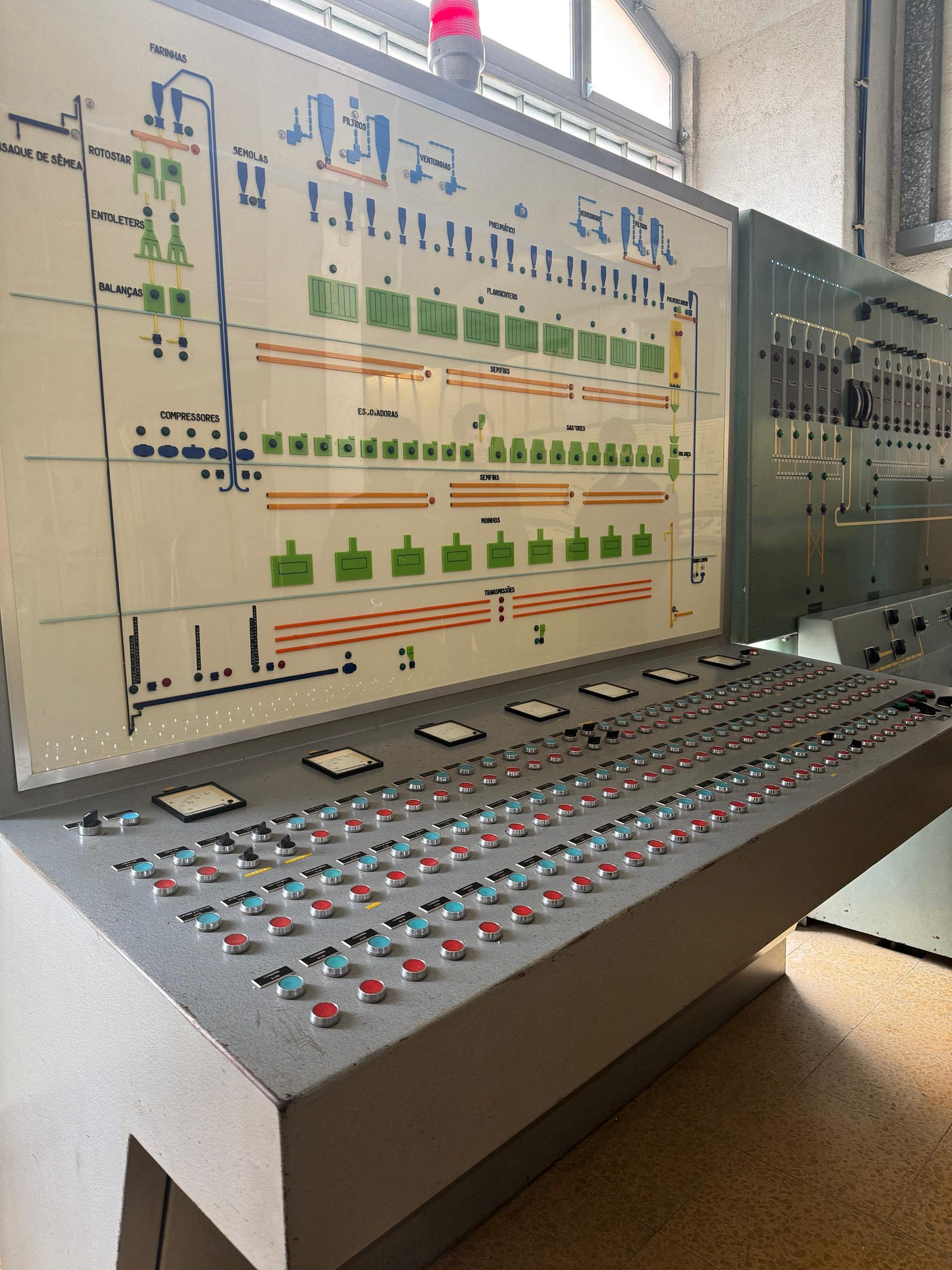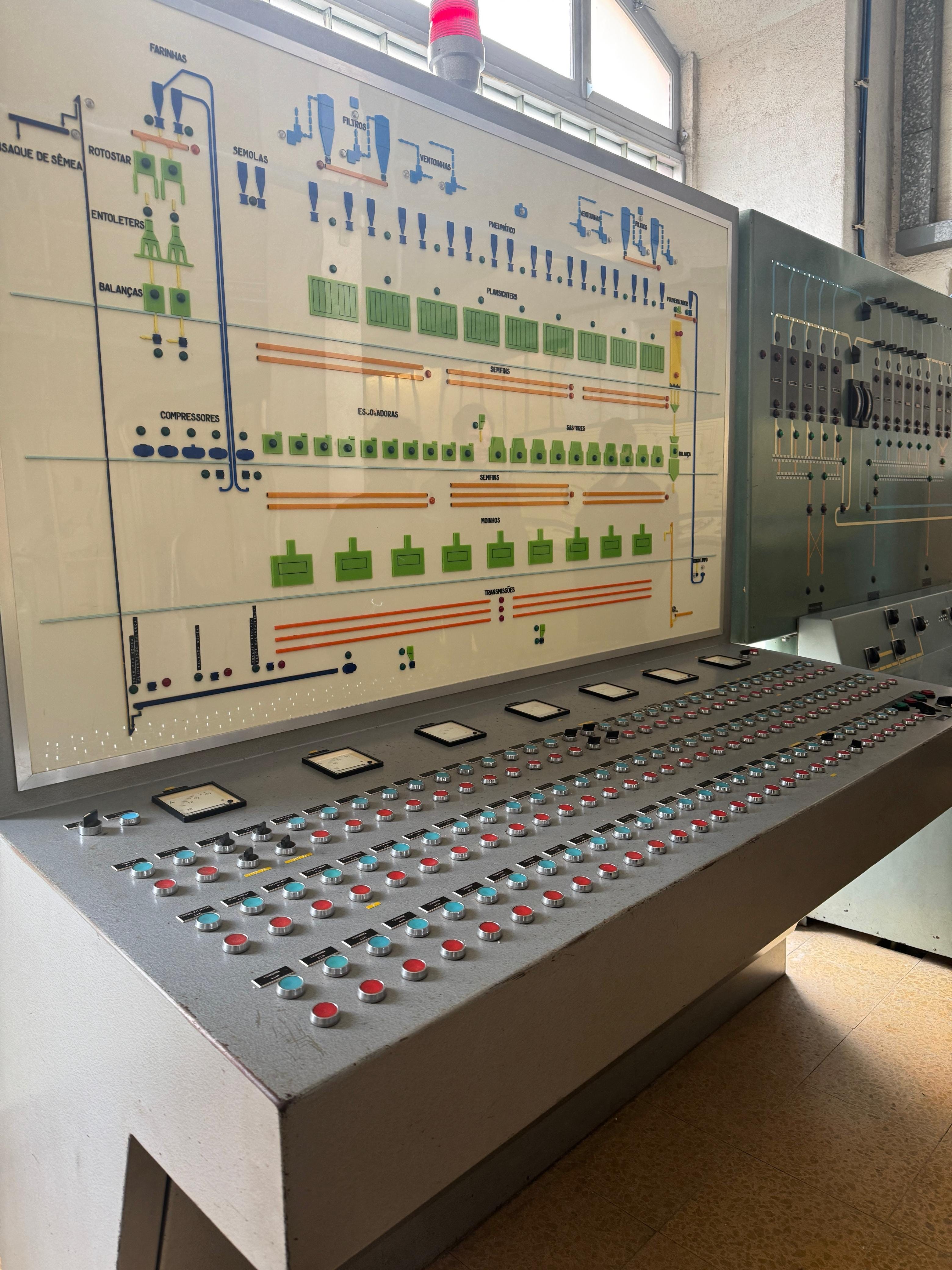 A place of vertical circulation. Four floors. Silos, rollers, tubes, sifters.